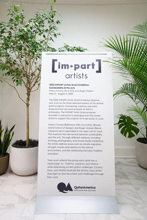 The exhibition featured 54 works by 39 emerging, mid-career, and established artists: Afaf Zurayk, Afraa Ahmed, Alia Damithan, Amer Akel, Amina Ayman Kadous, Asim Ahmed, Athar Jaber, Carol Mansour, Dahlia Abdelilah Baasher, Ebtisam Abdulaziz, Erhan Us, Fatema Al Fardan, Firouz FarmanFarmaian, Heba Amin, Helen Zughaib, Ilyes Messaoudi, Jack Persekian, Jamila Rizgalla, Katya Traboulsi, Maitha Damithan, Mahmoud Alhaj, Manal Deeb, Mansour el Habre, Maysaloun Faraj, Mehdi Djelil, Melissa Chimera, Moath Alofi, Mous Lamrabat, Qais Assali, Raafat Ballan, Ralph Khoury, Rami Saab, Rania Matar, Reem Al Jeally, Sama Tari, Sepideh Salehi, Sina Ata, Sinan Tuncay