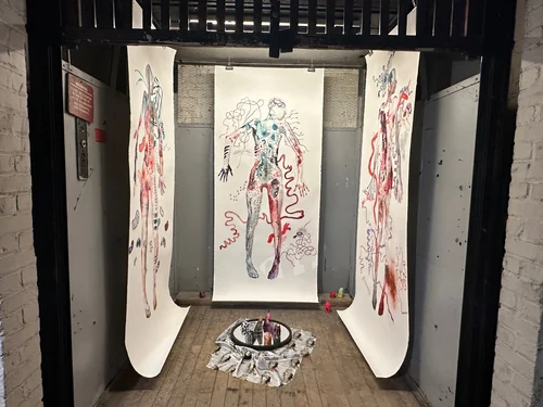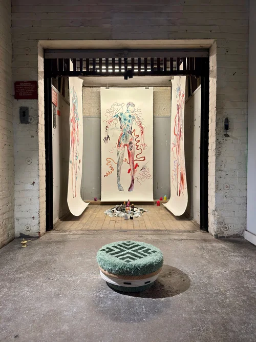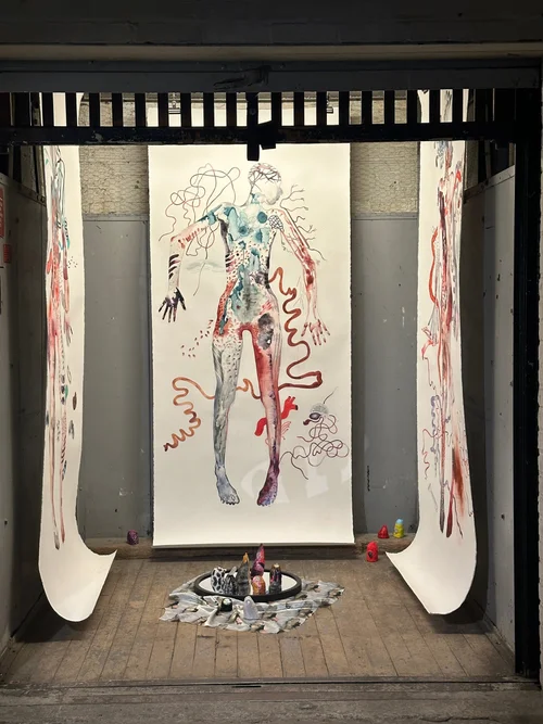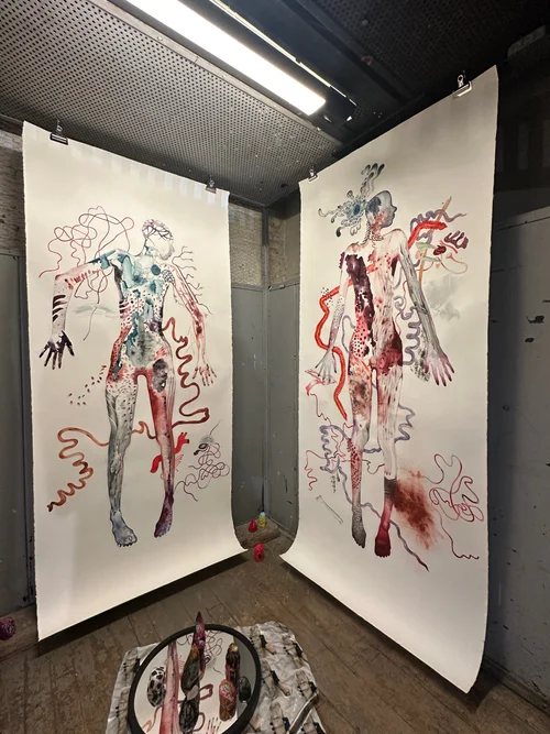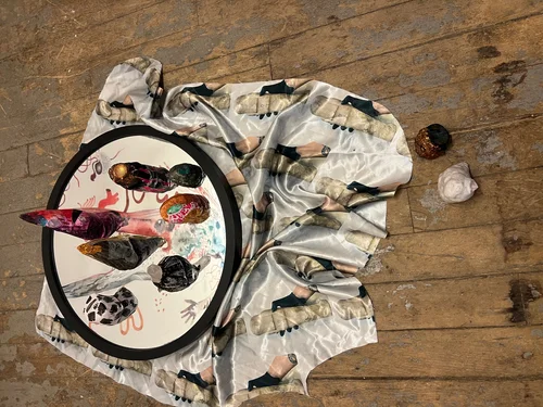 Curated by Laila Abdul-Hadi Jadallah, multiple themes emerged in the selection: among them, an emphasis on found materials given the lack of access artists had to their studios; a focus on the interior world, as artists found themselves isolated inside their homes in countries where quarantines were strictly enforced; and the intersection of war and the pandemic, with several of the artists experiencing both simultaneously. The artists represented here turned their state of isolation into a rich palette of reflections, imaginary worlds, and biting critiques about a moment in time that has left an indelible mark on all of our lives.